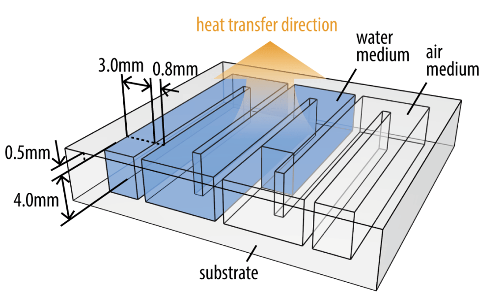 The figure illustrate two thermal markers infilled with different fluidic patterns of water and air medium.